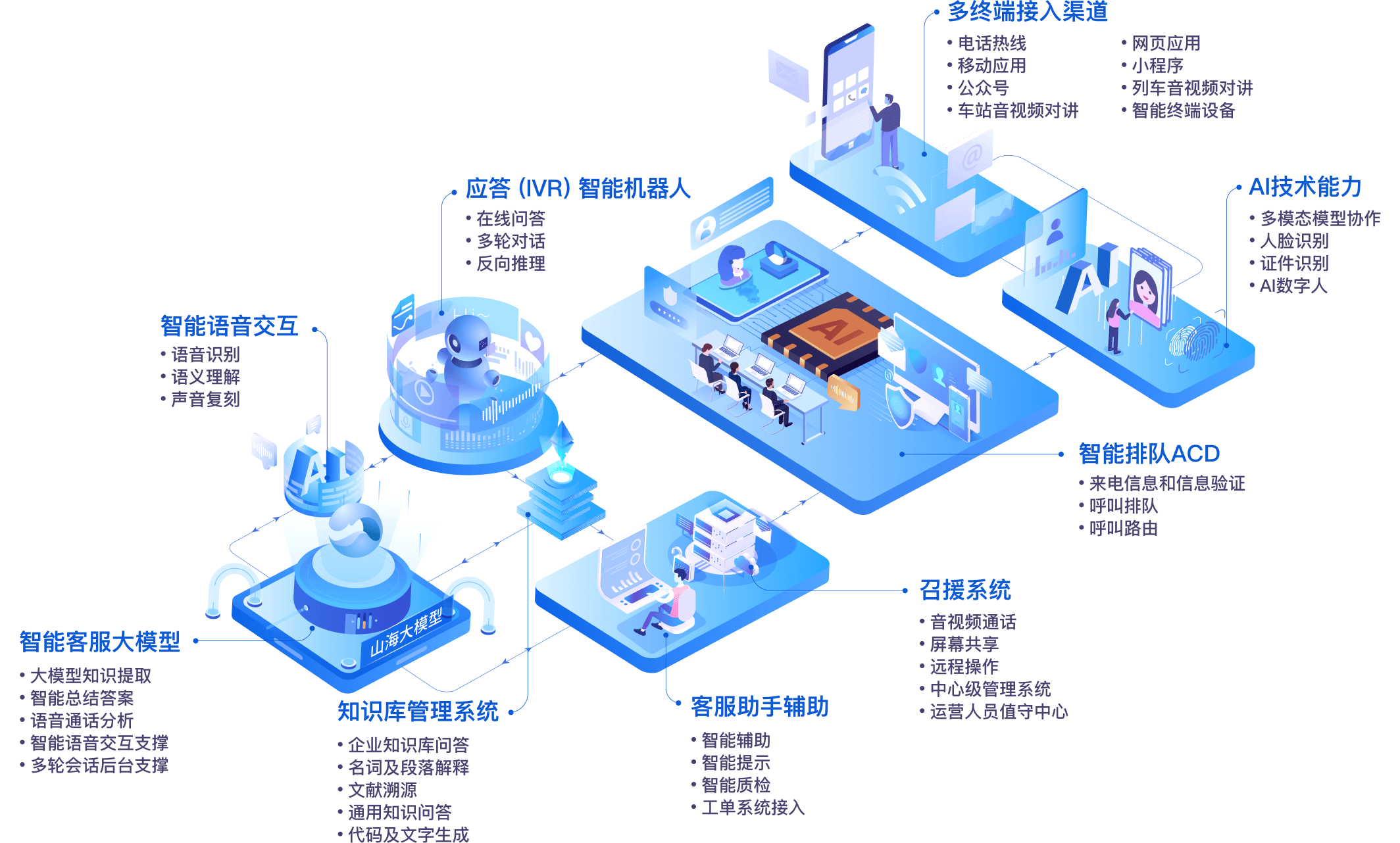 客服中心的有序运转,依赖于智能排队程序的调度,在有多个乘客通过不同渠道寻求服务的时候,智能排队程序可以根据规则,生成排队队列,有序调度待服务乘客和客服人员(包括机器人客服)的匹配关系,让乘客需求尽快得到满足。用户的呼叫在ACD交换机排队之后,引导到不同的受理席,让乘客尽量减少等待时间,由空闲资源为乘客提供服务